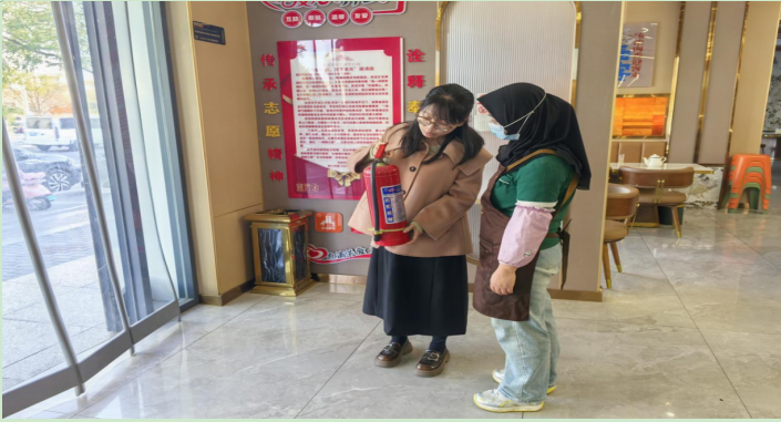 图为金昌市烟草专卖局安全管理科人员为房屋承租相关方现场讲授灭火器检查要点