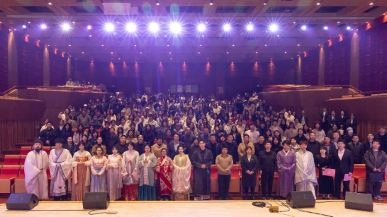 10月30日晚,渭南师范学院莫斯科艺术学院“丝路艺创”辅导员工作室开学第一课——“中华优秀传统文化进校园”活动在逸夫楼音乐厅精彩开讲。特邀优秀校友国风达人“皮卡晨”冯佳晨、李白扮演者高鑫、子虞三位嘉宾齐聚一堂,以沉浸式、互动式的体验,为现场师生奉上了一场传统文化盛宴。