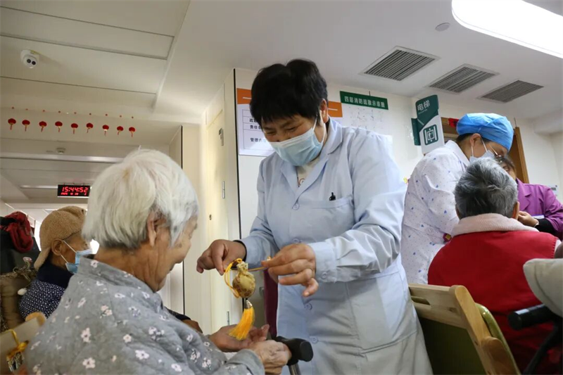 最动人的当数“长者之我想对你说”环节,或是表达对老人的牵挂,或是表达对医护人员的感谢。“俺爸在这俺放心又开心,在这吃得好,身体健康,衣服洗得干干净净,非常感谢你们的付出!”一名老人的子女对着话筒说完,朴实的话语让在场医护人员倍感温暖。活动尾声,大家一起合影留念,动手制作菊花香包,指尖翻飞间,阵阵药香与亲情暖意交织在一起。