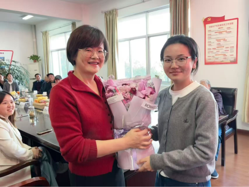 活动伊始,校长室成员热情迎接退休教师返校,随后大家一同步入布置温馨的党员活动中心,开启这场充满温情的相聚。首先,沈建岭校长致辞,深情回顾退休教师们在区域教育发展中的付出与坚守,为他们送上“健康常伴、喜乐无忧”的节日祝福。接着,大家满怀敬意地观看了“时光慢递”视频,共同致敬退休老教师们。新教师代表李洪捷发言,表达了对前辈“传帮带”精神的敬佩,以及传承教育初心的决心。退休教师们也分享了自己教育生涯中的难忘故事,言语间满是对教育事业的热爱。最后,新教师任馨雨为即将退休老师向娟献上鲜花,愿她退休后的生活如春花般烂漫。活动结束后,全体人员合影留念,定格这份跨越时光的教育情谊。合影结束,老教师们漫步于崭新的校园,追忆往昔岁月,对学校今日发展成就深感欣慰与自豪。