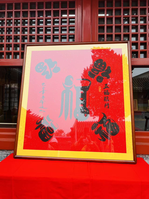 本次“书法艺术展”,展出了王国甜先生用几十年创作的书法作品《道德经》长卷,以及五福颂字,紫气东来等几十幅书法作品。