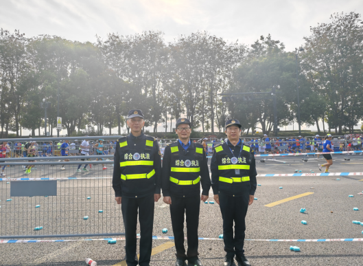 紫阳街道综合行政执法中队周密组织,在责任路段及周边重点区域实施定岗值守与动态巡查。队员们恪尽职守,高效开展秩序维护、路线清障、人流疏导及应急服务等工作,确保了赛道沿线环境整洁、通行顺畅,展现了执法队伍良好的专业素养和精神风貌。