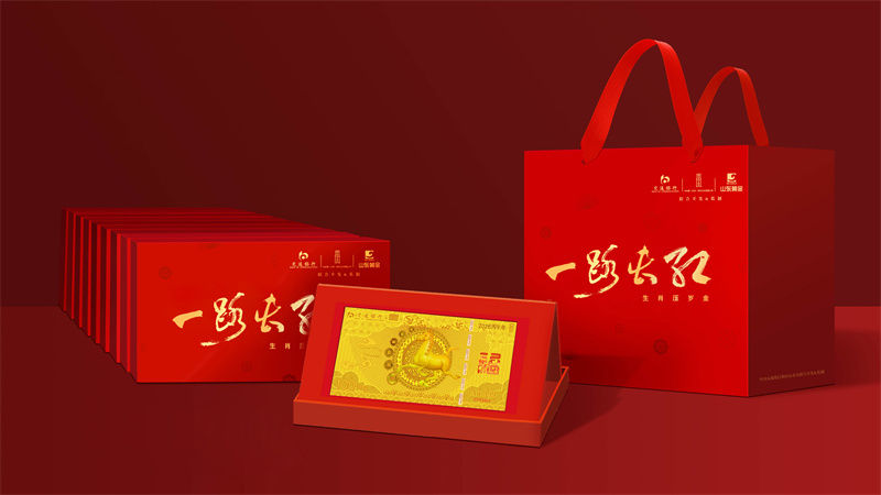《一路长红·马年压岁金》是交行与中国钱币博物馆联合推出的生肖压岁金系列产品之一。产品将压岁钱的文化内涵与中华传统生肖的纪念意义巧妙结合,以国家一级文物铜奔马为文化原型,寓意奔向幸福安康。