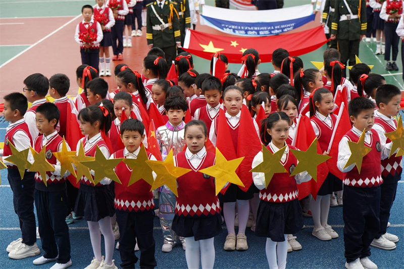 四年级学生手持“强国有我”标语,誓言铮铮;一、二年级“小小追光者”则用充满童真却坚定的表演,完成了一次从历史到未来的精神穿越。