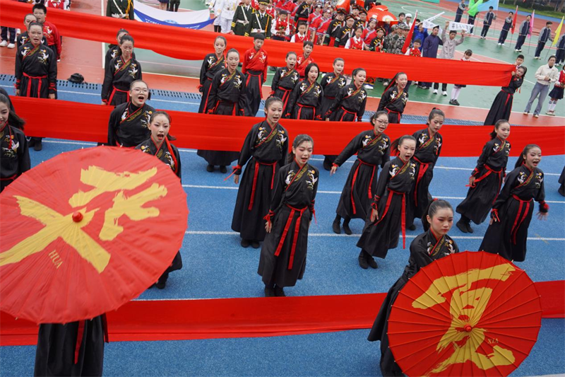 发布时间:2025-11-07 10:59:37 | 来源:中国网 | 作者: | 责任编辑:孙玥近日,浙江新昌南瑞实验学校以“沐阳光运动、承抗战精神、做强国少年”为主题的第二十二届阳光体育运动会正式拉开帷幕。一场开幕式,不仅展现了青少年蓬勃的体育风采,更成为一堂融合了历史传承与时代使命的“公开课”。