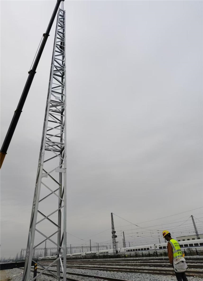 沪渝蓉高铁南京枢纽(南通)四电项目南通动车所改造工程首批格构式钢柱成功组立