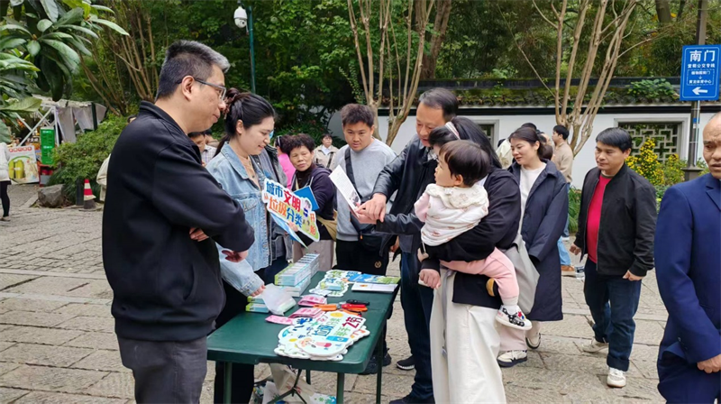 热闹的宣传展位与盛放的菊花相映成趣,工作人员们一边发放宣传手册,一边耐心解答疑问,清晰解读《浙江省生活垃圾管理条例》要点与实操方法。知识问答环节更是人气爆棚,市民游客踊跃抢答,答对者收获的小礼品成为环保理念的美好纪念。