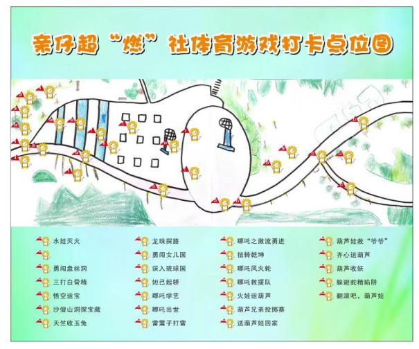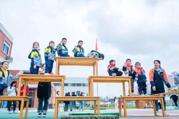 “菜单式亲子体育课”创意十足,教师利用日常材料设计“实力大闯关”等活动,增进亲子信任,培养幼儿勇气;“户外自主体锻”“运动大闯关”“野战探险区”等活动,让幼儿自主决定运动方式,享受运动乐趣。同时,园所联合家庭、社区,筛选周边资源,完善课程资源墙,打造三位一体运动环境。