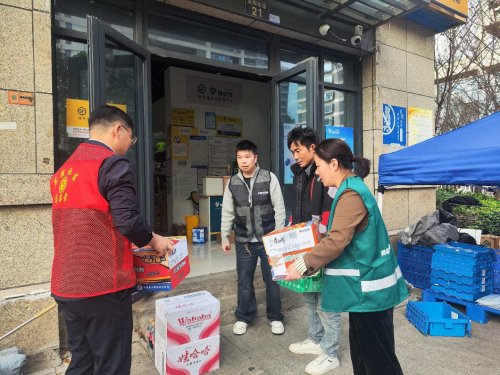依托“甬爱E家”服务体系,贵驷街道激活“奔跑者补给角”,将关怀送到配送最前沿。贵驷社区工作人员与志愿者提前备齐方便面、矿泉水、可乐等物资,及时送上门的补给品成为辖区快递点最亮眼的风景。“忙得没时间吃饭,这方便面送得太及时啦!”刚卸完一车货的顺丰快递员张师傅接过物资,脸上洋溢着笑容。