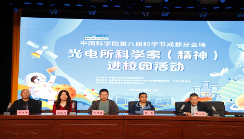 心系“国家事”肩扛“国家责”——中国科学院光电技术研究所专家走进四川省剑阁中学为厚植高中学子家国情怀,弘扬科学家精神,引导青少年树立“科技报国”理想,2025年10月30日下午,中国科学院光电技术研究所资深科研工作者陈勇老师一行走进剑阁中学开启了一场“心系‘国家事’,肩扛‘国家责’”科学家精神专题讲座。剑阁中学尊贤厅内近400名高一师生代表参加本次活动,气氛活跃,反响热烈。