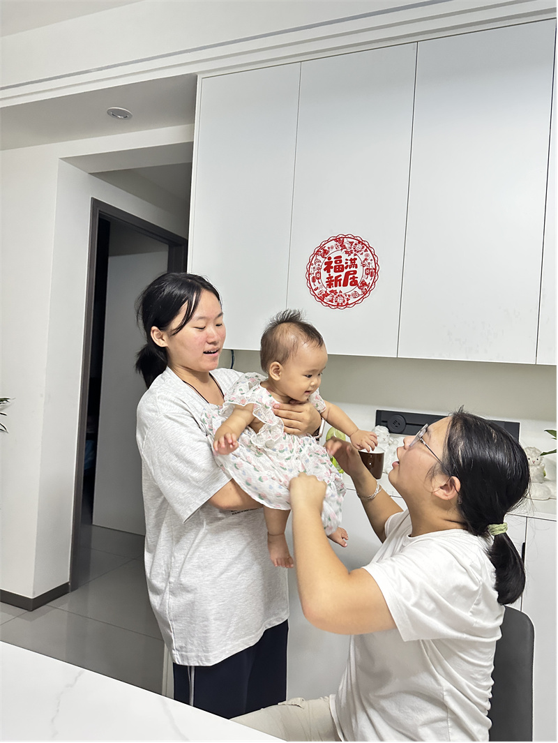 这份教学中的用心,也延伸成了跨越时光的师生情谊。即便当年的学生踏入高中校园,每逢假期或周末,总会专程找谢红梅。忽然瞥见谢红梅怀里抱着个小姑娘——那是她刚满10个月的女儿,正睁着圆溜溜的眼睛好奇地打量着这些陌生又亲切的大姐姐。“老师,让我抱抱小妹妹吧!”她们笑着轻声提议,语气里满是小心翼翼。谢红梅笑着点点头,轻轻将孩子递过去。他们不再是当年懵懂的孩童,身姿愈发挺拔,谈吐间多了几分青涩与朝气,却依然会笑着喊一声“谢红梅”,围在她身边分享高中的新课堂、寄宿生活的趣事,也倾诉学业的压力与对未来的迷茫。谢红梅总会停下手中的事,拉过椅子让他们坐下,像对待老朋友般认真倾听,为他们的成长欣慰,也为他们的困惑给出中肯建议。偶尔提起当年课堂上的趣事,瞬间便能驱散时光带来的生疏,让阳光里的交谈声、笑声,交织成最温暖的画面。