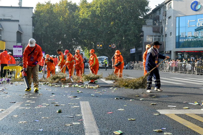 南京城管精细护航“南马”赛后15分钟恢复赛道整洁