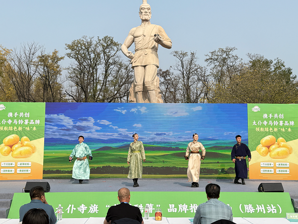 活动现场,“草原酷薯”主题宣传视频全方位呈现太仆寺旗马铃薯的地理优势、品牌内涵及产品特色,视频中广袤草原、肥沃土地与勤劳农民的画面,生动展现当地乡村振兴良好态势。活动同步设置马铃薯体验区与农特产品体验区,与会人员现场品鉴马铃薯、牛肉干、奶制品等特色产品,对品质高度认可;太仆寺旗乌兰牧骑现场表演草原歌曲,进一步丰富活动氛围。