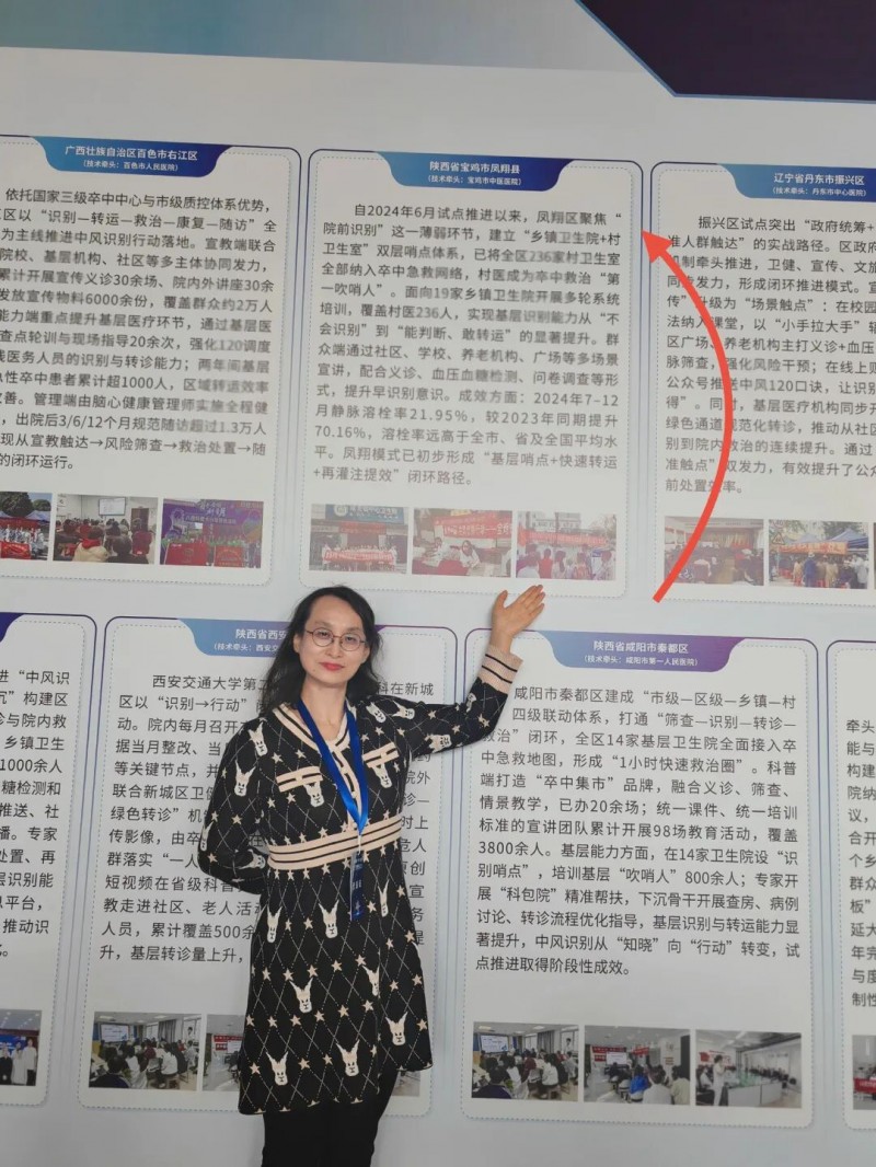 作为全国中风识别试点地区优秀代表,凤翔区医院卒中中心主导的中风识别工作成效在大会壁报区重点展示。自2024年试点工作启动以来,在区卫健局及医院的统筹推进下,卒中中心聚焦“院前识别”薄弱环节,构建“乡镇卫生院+村卫生室”双层哨点体系,将全区236家村卫生室全面纳入卒中急救网络,让村医成为卒中救治“第一吹哨人”。同时,面向19家乡镇卫生院开展多轮系统培训,实现236名村医卒中识别能力全覆盖提升。在群众端,通过社区、学校、养老机构等多场景宣讲,结合义诊、血压血糖监测、问卷调查等形式,显著提升了群众早识别、早预防意识。数据显示,2024年7月至12月,凤翔区急性缺血性脑卒中静脉溶栓率达21.95%,较2023年同期提升70.16%,远高于全市、全省及全国平均水平。