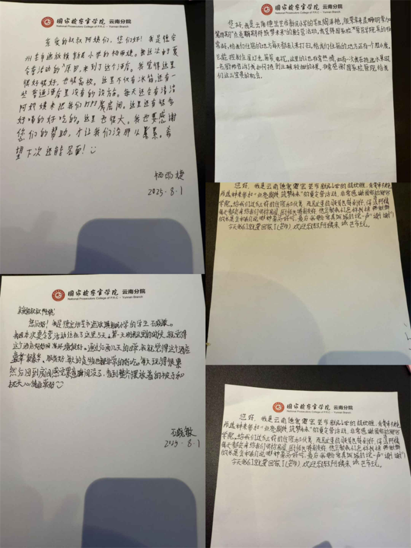 8月 1日,由最高人民检察院与云南省人民检察院联合主办的“点亮期待・筑梦未来”第四期夏令营圆满落幕。昆明铁检分院定点帮扶村——芒市遮放镇河边寨村新民小学的 5名孩子,带着装满见闻的笔记本、攥着舍不得放下的活动纪念徽章,在欢声笑语中结束了这段足以铭记多年的成长旅程。
