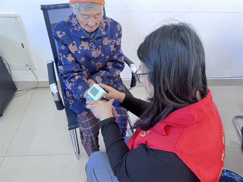共护健康线,爱心服务暖民心。李荡村的志愿者带着血压测量仪走进各族老年人家中,一边细致地为老人测量血压、记录健康状况,一边送上重阳糕等节日慰问品。不同民族的老人接过香甜的糕点,笑着拉起家常,有的还拿出自家的民族特色点心回赠志愿者,小小的慰问品成了各族群众心贴心的纽带,让重阳的敬老温情与民族团结的暖意一同沁入人心。