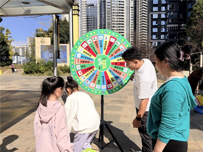 垃圾分类互动区通过“转盘识别垃圾类型+分类投球实践”的形式,让居民在游戏中掌握垃圾分类知识。每位居民拥有2次投球机会,投中对应分类区域即可获得小礼品,大人小孩都积极参与,现场欢声笑语不断。