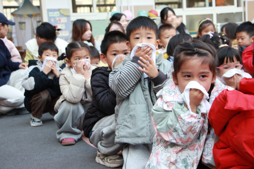 随着消防警报声响起,紧张的应急疏散演练正式开始。各班教师迅速组织幼儿用湿毛巾捂住口鼻,弯腰低姿,按照预定路线有序撤离。整个过程紧张而不慌乱,短短几分钟内,全体师幼便安全抵达指定集合点。随后,社区网格员进行了现场宣讲,进一步巩固了孩子们的火灾避险知识。