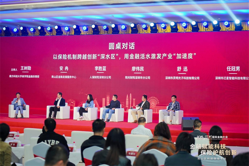 圆桌环节由南方科技大学王树勋教授主持,联合南山区政府、人保财险、阳光财险及灵明光子、迁星智能等嘉宾代表,围绕“以保险跨越创新深水区,用金融激发产业加速度”展开四方对话。对话嘉宾从政策、市场、需求、技术等维度分享洞见,既解读制度设计,也剖析实践案例,为科技保险发展明晰路径。