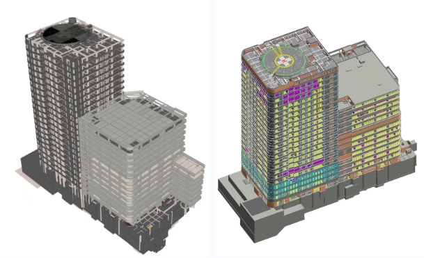 项目团队充分运用新技术、新工艺通过BIM技术对建筑物多角度数据进行精准测算,建立了涵盖建筑、结构等全专业的精细化模型。通过BIM技术,提前发现并解决各类设计冲突,有效避免了施工过程中的返工。实时监控和调度,实现现场施工的精准管理。