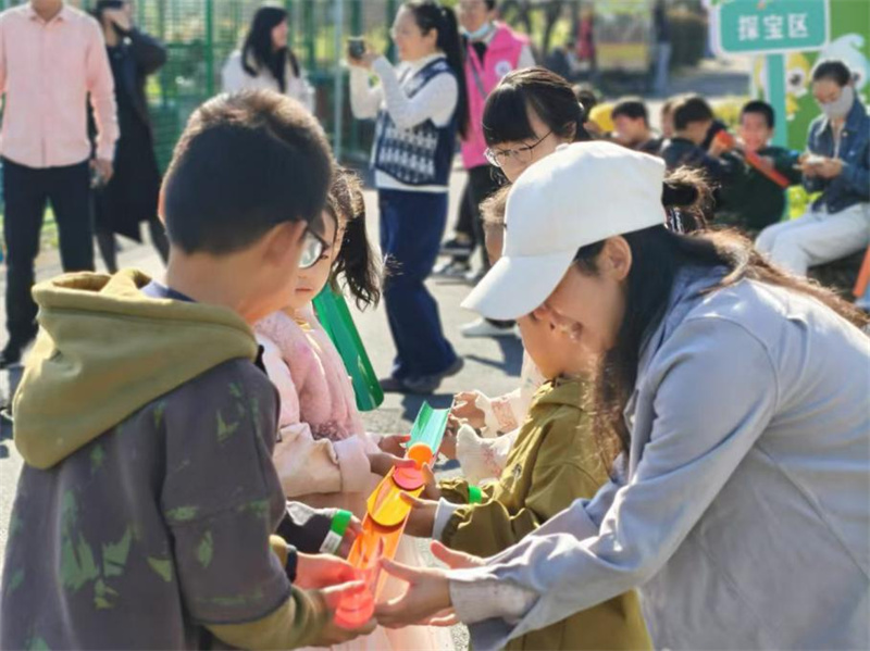 而“能量传递”游戏则将活动推向高潮,孩子们手手相连,小心翼翼地传递圆环,一旦掉落便迅速沟通调整节奏重新开始。“不能慌,要跟旁边的小伙伴配合好!”8岁的林梓轩大声提醒队友,在反复尝试中深刻体会到“人心齐,泰山移”的和合智慧与团队力量。
