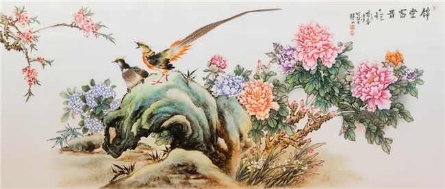 张春浪创作的粉彩花鸟瓷板画(受访者供图)