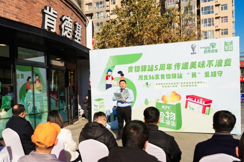 作为响应《中华人民共和国反食品浪费法》的创新实践,2020年,肯德基在深圳、广州率先推出全国首批食物驿站。五年来积极响应号召,融入品牌战略,依托大数据等技术赋能,首创餐饮行业“食物驿站”公益模式。该模式将店内已过最佳赏味期但仍在保质期内的“余量食物”免费提供给有需要的人,创新性地减少食物浪费,为社会传递了正能量。活动现场,肯德基相关负责人也宣布,截至目前河北省已经有36家食物驿站,分布在石家庄、唐山、保定、沧州、邯郸、秦皇岛、廊坊等7个地市,其中石家庄市有21家食物驿站。