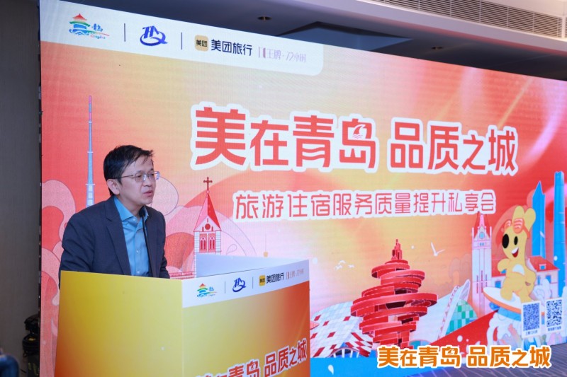11月21日,由青岛市文化和旅游局支持,青岛市旅游饭店业协会联合美团共同主办的“美在青岛、品质之城”票根经济旅游住宿私享会在青岛成功举办。本次活动以票根为媒、品质为桥,全市酒店领军者围绕住宿业提质增效、文旅消费升级、票根经济创新发展等核心议题展开深度交流,旨在搭建政企平台三方联动桥梁,共同激活青岛冬季文旅市场活力,推动全域旅游高质量发展。青岛市文化和旅游局市场管理处处长苏宏伟,青岛市旅游饭店业协会副会长兼秘书长、青岛市旅游饭店行业工会联合会主席付妍,美团公司事务部酒旅生态市场华北区总经理何浩,美团甄选酒店山东省商务总经理林臻参加活动。