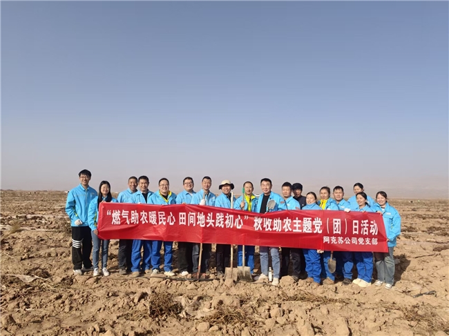 为深化“我为群众办实事”实践活动,将党建引领转化为助农实效,中石油天然气销售公司所属的阿克苏新捷能源有限公司(以下简称阿克苏公司)党支部组织党员、入党积极分子、团员及青年骨干,赴温宿县红旗坡农场开展“燃气助农暖民心、田间地头践初心”主题党(团)日活动。党员干部与农户并肩投身采收、分拣、包装全流程劳作,以实干为笔、以初心为墨,让饱满的红薯成为串联组织优势与群众期盼的“甜蜜纽带”。