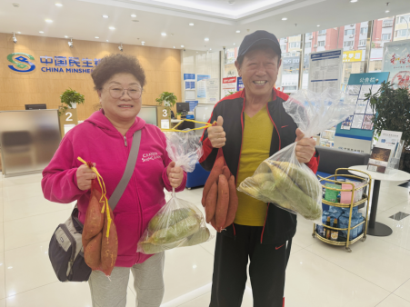 民生银行大连星海支行、延安路支行等网点则为客户准备了地瓜、萝卜这对“冬菜黄金搭档”,精挑细选的食材鲜味十足。“看这萝卜水灵灵的,今晚的饺子馅就用它配牛肉!”拿到秋菜的王阿姨开心说道。