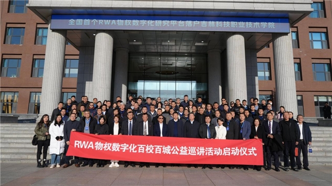 11月22日,RWA物权数字化首期公益讲座在吉林科技职业技术学院举办,党委书记张雷在致辞中指出:“职业教育必须跳出人才输出的传统定位,主动成为产业创新的发动机”,“物权数字化——贡献了RWA中国智慧普惠了RWA中国方案”,以“理论赋能实践、人才支撑产业、联盟聚合资源”为核心使命,聚焦数字经济与实体经济融合中的关键瓶颈问题,深耕RWA物权数字化领域的理论研究、实践创新及人才培育。物权数字化理论创始人、《RWA与物权数字化》理论专著主编姚海涛先生、武汉物权数字化科学技术信息研究院执行院长靳宝先生做了主题演讲。同时举办了“RWA物权数字化课题组”启动挂牌仪式。环球商协会联盟、吉林省企业经济研究所、新加坡莱富士资本等联办单位代表,以及吉林省百余家企业负责人、兄弟院校代表、在校师生共500余人齐聚现场,共同见证这一产业与教育深度融合的里程碑时刻。