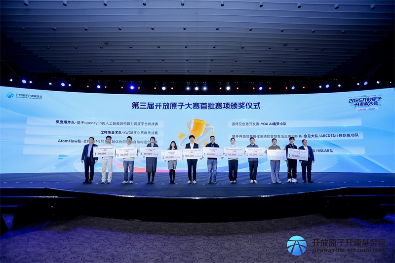 图:KWDB核心贡献挑战赛一等奖获奖团队(右六)参与首批赛项颁奖仪式