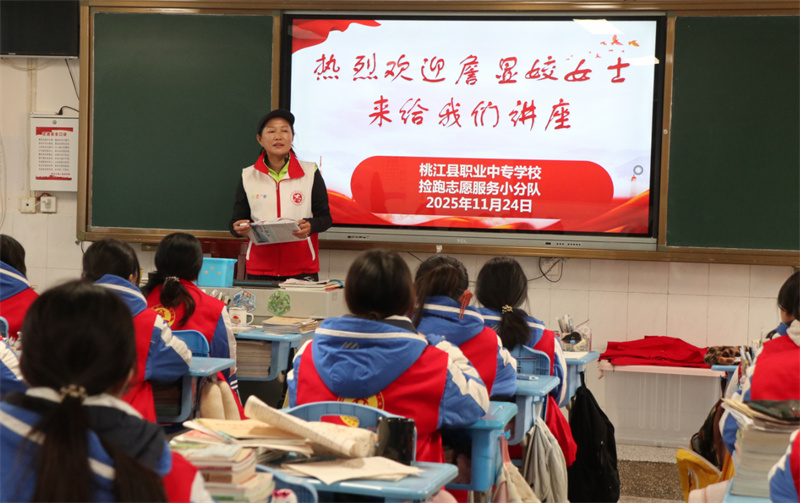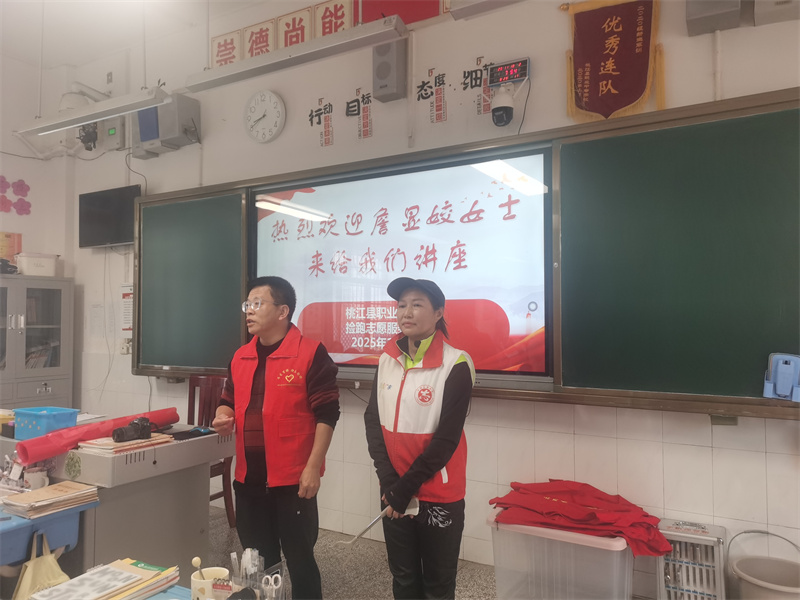 早八点,在桃江县职业中专学校,旅游英语专业164班的教室里,一股别样的激情在静静流淌,等待着被点燃。仪式伊始,詹显姣女士站上了讲台。她娓娓道来,分享着她对“捡跑”这一独特公益形式的深刻体悟。她深情细数自己奔波于各地,投身于各级各类爱心志愿服务的经历。
