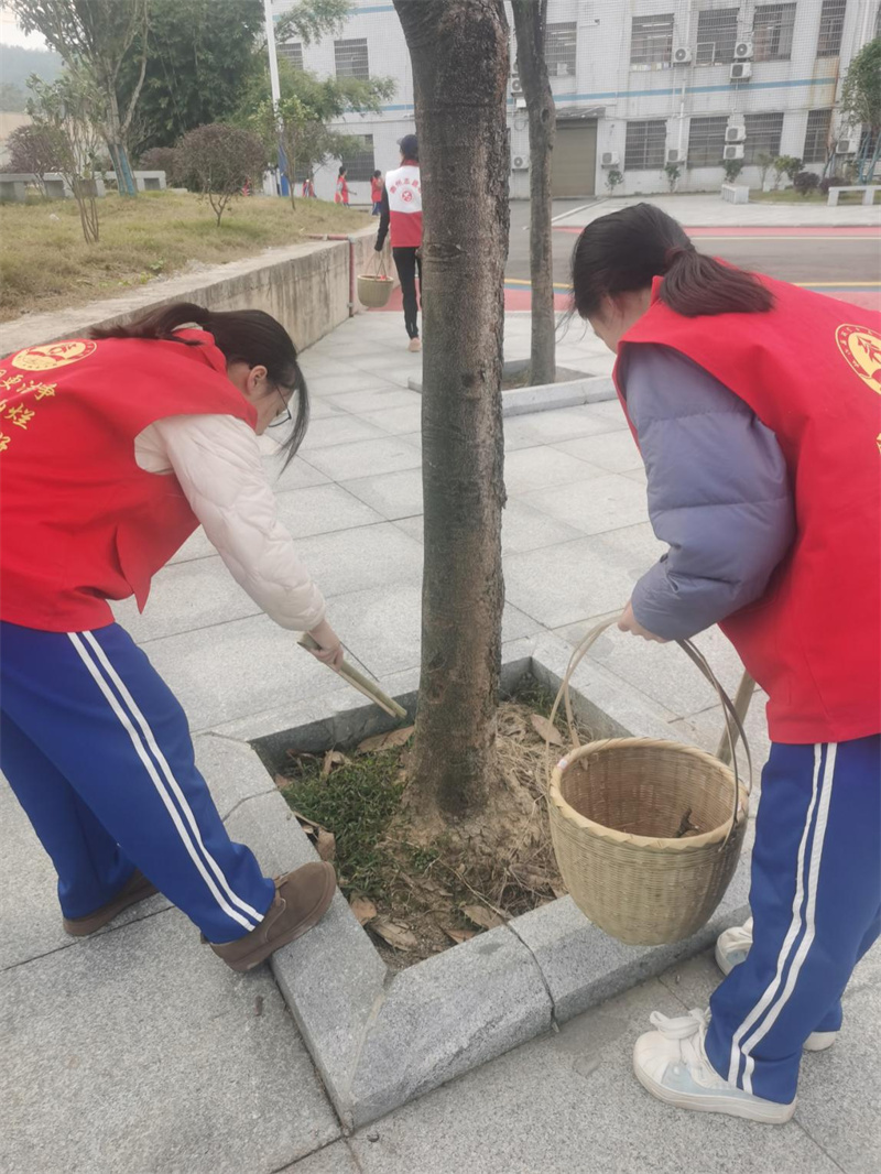 口号声响彻校园,同学们目光如炬,不放过任何一个角落;手中的夹子灵巧地开合,将隐匿于草丛中、跑道边的片片垃圾精准擒获,投入竹篮。那一抹抹跃动的“志愿红”,在阳光下勾勒出无数个美丽的“弯腰”弧线。那不是简单的躬身,那是向大地表达的敬意,是为爱付出的最优美姿态!