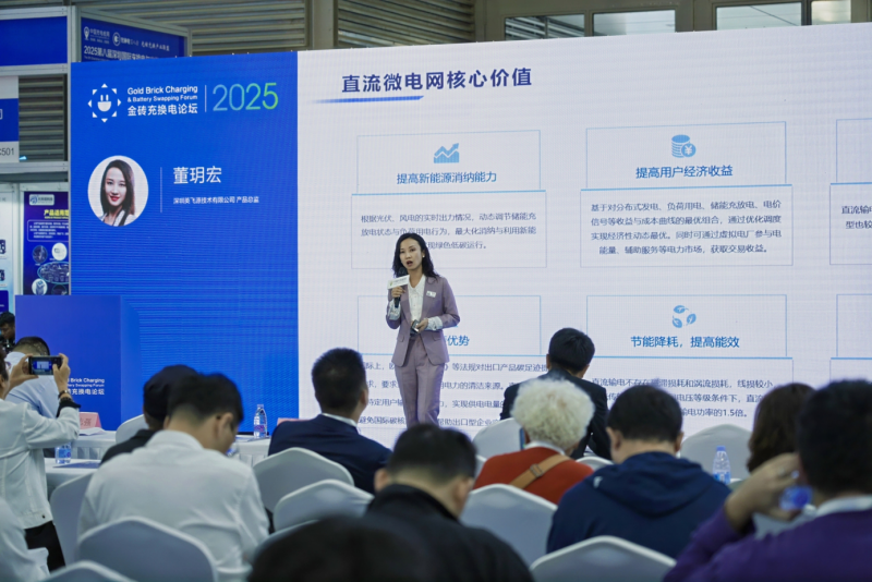 在同期举办的“充换电年度产品技术发展论坛”上,英飞源产品总监董玥宏发表了《零碳园区综合解决方案》的主题演讲,系统阐述了构建零碳智慧园区的技术框架与实践案例,并详细分享了英飞源中国区总部——南京静龙山“光储氢充柔控一体化”项目的落地成果。