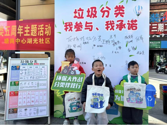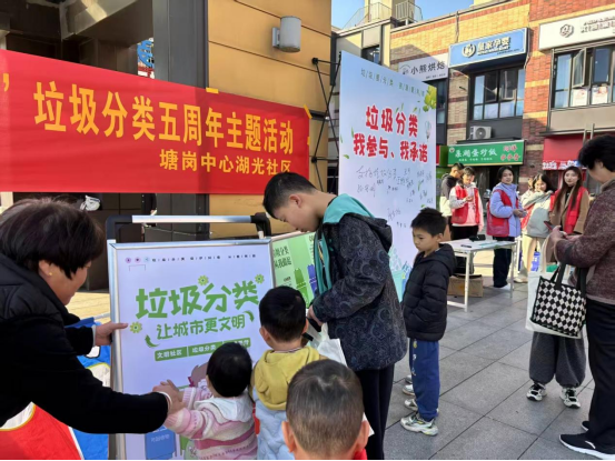 近日,塘岗中心湖光社区在辖区广场举办“五载分类路、绿色新篇章”垃圾分类五周年主题活动,将党建红色引擎与绿色环保理念深度融合,打造为一堂生动有趣的社区治理实践课。