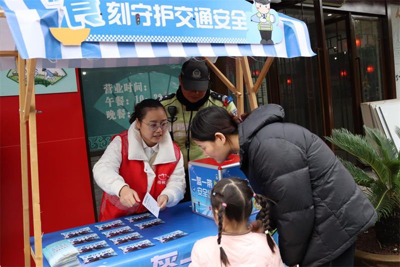 “阿姨,您平时买菜骑电动车,一定要记得戴好安全头盔,不仅要戴,还要系紧卡扣,这样遇到意外才能真正起到保护作用。”交警走到一位阿姨身边,递上印有电动车安全骑行要点的宣传单,结合近期辖区内发生的真实案例,用“大白话”讲解不规范骑行的风险。针对带着孩子用餐的家庭,宣传员重点介绍儿童安全座椅的安装和使用方法;面对上班族,则提醒大家早晚高峰路况复杂,开车不抢道、骑电动车不逆行,平安上班、安全回家最重要。