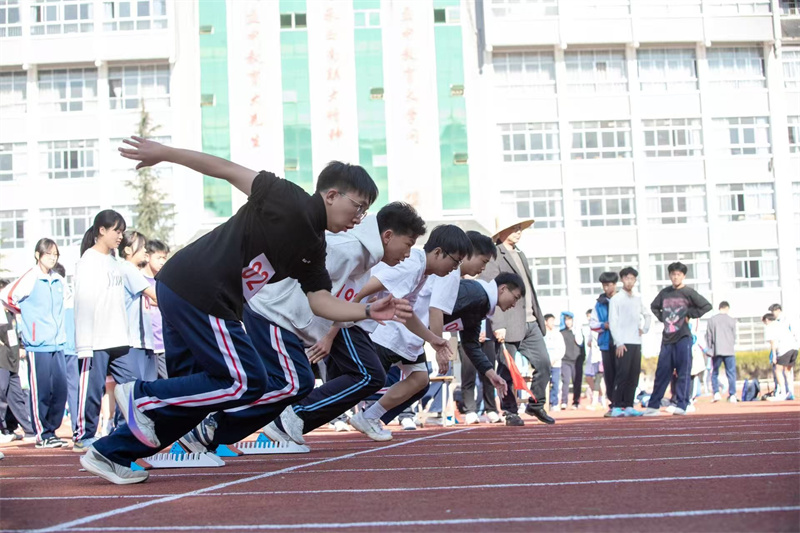赛道之上,激情飞扬!田径运动会作为最具人气的环节,点燃了全校师生的热情。百米赛道上,运动员们如离弦之箭,风驰电掣向着终点冲刺;跳高、跳远场地中,健儿们蓄力腾跃,用矫健身姿挑战自我极限;长跑项目里,选手们咬牙坚持,用耐力与毅力书写青春担当。赛场内外,加油声、呐喊声、欢呼声此起彼伏,师生们共同为每一次突破喝彩,为每一份坚持鼓掌。“能在繁忙的学业中参加跑步比赛,我感到很高兴,希望通过这次运动会取得更好的成绩。”高一学生何大进的话语,道出了全体运动员的心声。此次运动会不仅是速度与激情的碰撞,更是体育精神的传承,展现了盘中学子昂扬向上、奋勇拼搏的精神风貌。