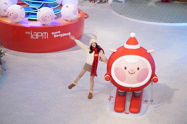 最后,沿着南昌路来到咚咚集章纪念站,可爱的Flying Dong Dong滑雪造型气模正等着你来合影留念,另外参与互动即可获得Flying Dong Dong的iapm限定版画套章明信片,用一张专属咚咚的冬日信笺,将心意与祝福传递,为这段场温暖浪漫的冬日童话假期划上句号。