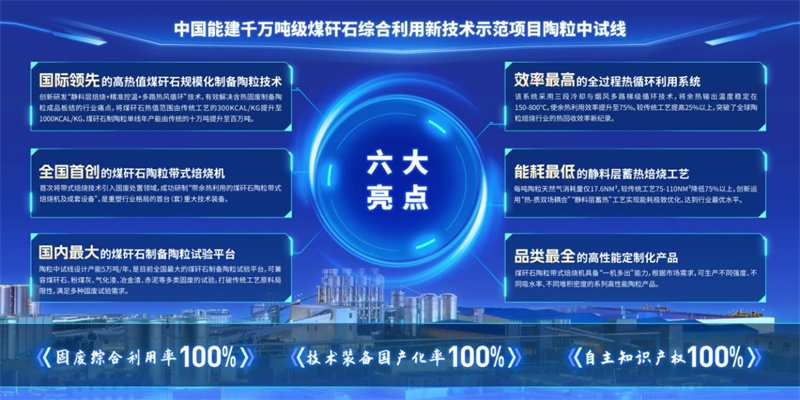 12月1日,由中能建装配式建筑产业发展有限公司投资建设运营的山西大同千万吨级煤矸石综合利用新技术示范项目陶粒中试线成功建成投运,其核心装备“带余热利用的煤矸石陶粒带式焙烧机及成套设备”问世,标志着将煤矸石彻底“吃干榨净”、全量高值转化为绿色资源的技术路径全面打通,煤基固废规模化、高值化、产业化消纳利用成功通过工业化验证,为我国大宗固废绿色处置提供了革命性解决方案和产业化实践范本,对于推进“无废城市”建设、促进传统产业转型升级、实现绿色循环低碳发展具有重大战略意义。
