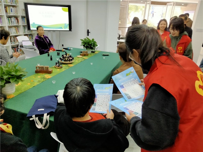 垃圾分类志愿者的话就像是一个引子,在芳香四溢的活动现场,一下子打开了老人们的话匣子,架起了一座沟通的桥梁。他们认真地接过宣传页细细看了起来,不时问着心中的疑惑:“我家有破碎的灯管应该属于什么垃圾?”“我家还有许多过期的药品我应该丢那个垃圾桶?”“家里破碎的花盆改怎么处理?”对于他们提出的问题,垃圾分类志愿者们都耐心地一一作了回答。关爱老人,是传承中华民族的传统美德;做好垃圾分类,是守护我们共同的家园。在这个寒意渐浓的秋天,垃圾分类志愿者在关爱老人的同时,不忘用行动传递着垃圾分类的责任。