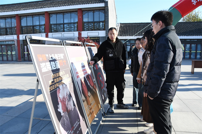 广场东侧的普法展板区人气高涨,10余块展板通过漫画、案例解析等形式,系统展示宪法发展历程、“八五”普法成果及常见法律知识,工作人员逐一讲解,让抽象的法律条文变得生动易懂。同时,活动特别设置禁毒宣传专区,通过危害图解等方式,重点普及电子烟的潜在危害,提醒居民警惕添加合成大麻素等新型毒品成分的电子烟,严禁向未成年人销售电子烟,引导群众远离毒品侵害。