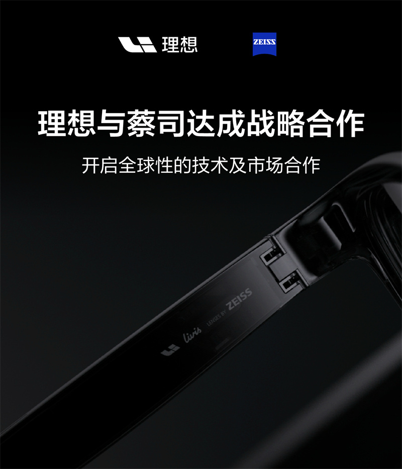 作为战略合作的一部分,理想和蔡司携手打造卓越线上配镜服务,用户仅需上传验光单,配镜最快当天完成并发货。理想与蔡司的合作不仅限于国内,也将面向全球市场,共同研发下一代智能眼镜光学技术。