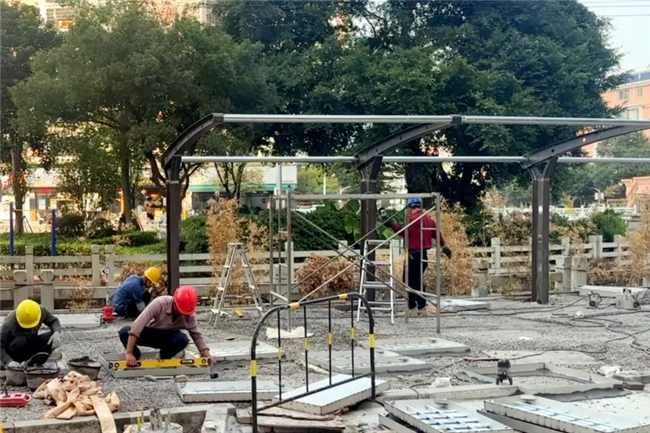 据悉,鑫荣嘉园老旧小区改造涵盖多项内容,包括雨污分流、弱电管线规整、海绵化改造、停车场扩建、围墙翻新、消防升级、绿化提升及休闲娱乐设施加装等。