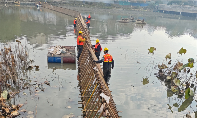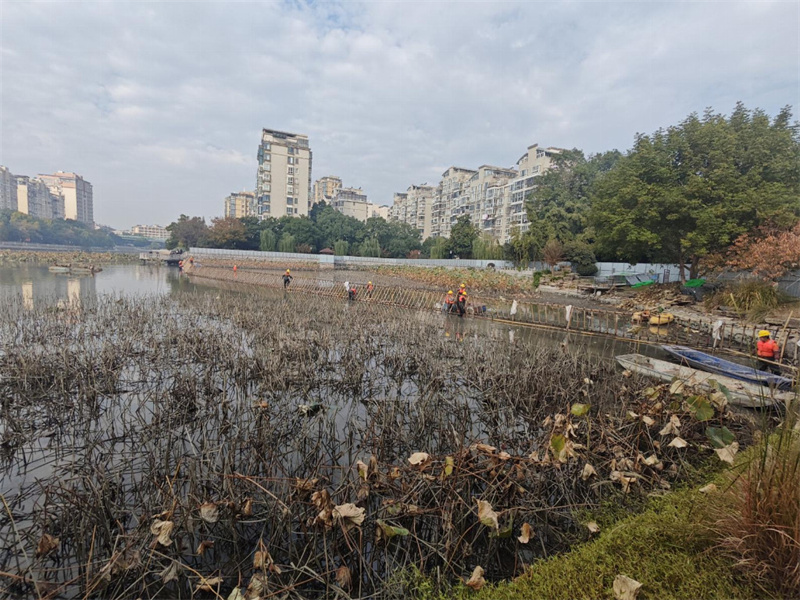 三是开展生态修复治理。针对清水塘区域实施系统性生态改善,完成约2.26万平方米清淤及3.3万平方米清杂工作。同时通过种植1.28万平方米沉水植物、4242平方米荷花等水生植物,并投放适宜水生动物,构建稳定健康的水生态系统,让水体“净起来”。