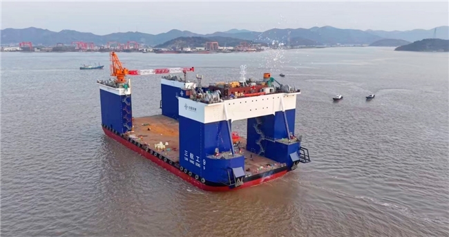 据悉,“三航工9”船舶总长105米、型宽43.5米、型深7.5米,创新采用可拆式尾塔楼设计,配备1000千瓦时箱式储能站。具备12000吨级混凝土沉箱的运载与下潜安装能力,同时可满足风电导管架等大型构件的运输需求。建成后其举力将达18000吨,成为中交三航局旗下最大的半潜驳船。