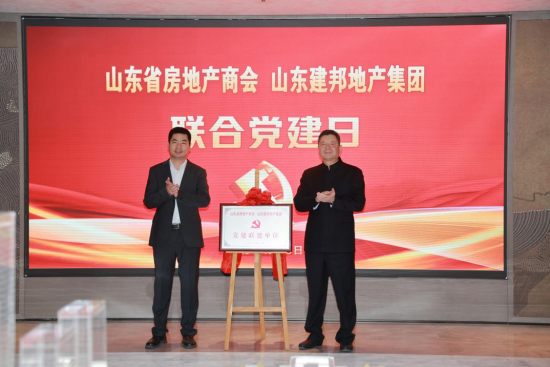 活动最后,山东省房地产商会党支部书记杨承林与山东中投建邦置业有限公司总经理苟建科共同为山东房地产商会和山东建邦地产集团“党建联建单位”揭牌。