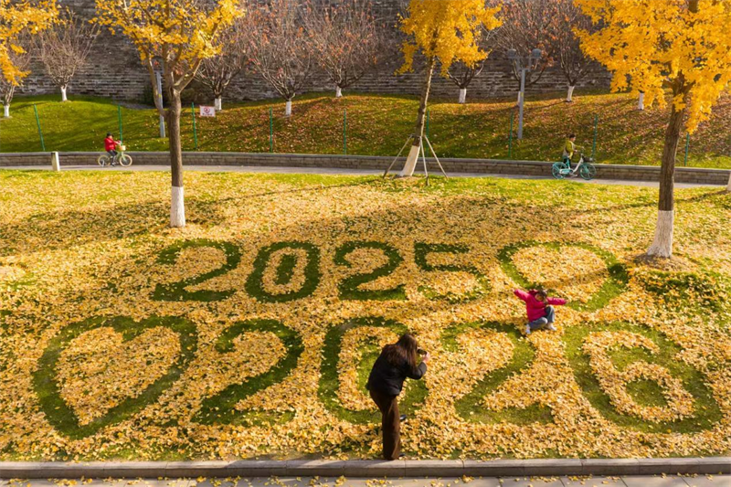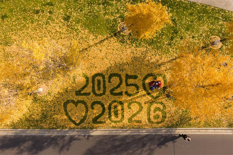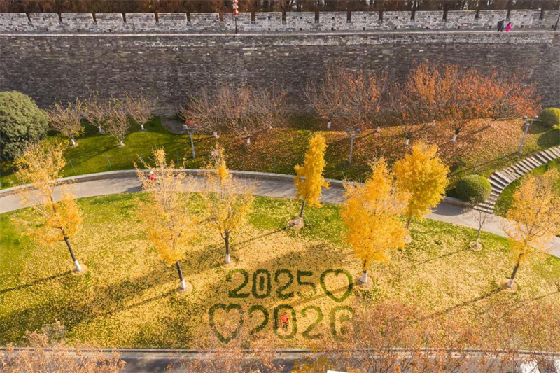据了解,刘金顶原本用银杏叶拼出的图案只有“2025+爱心符号”一行,市民游客非常喜爱,因此公园方又在“2025+爱心符号”的下一行接续创作了“爱心符号+2026”。“接续创作后,市民游客反响更好了,每天都有千余人到此拍照打卡。”玄武湖综管办相关负责人说。