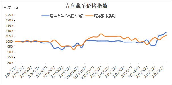 为更好地挖掘青海藏羊资源优势,助力打造绿色有机农畜产品输出地,青海省农业农村厅与中国经济信息社新华指数研究院聚焦青海藏羊产业展开深入研究,推出“新华·青海藏羊价格指数”,指数以2024年2月27日为基期,其指数体系全面覆盖青海境内藏羊活畜以及羊胴体的交易情况。该指数以量化监测的精准手段,对藏羊产业发展脉络进行系统梳理。通过数字化工具,为政府制定科学合理的决策、实施精准有效的政策提供详实可靠的参考依据。进而助力青海藏羊进一步放大品牌效应,显著提升其在市场中的核心竞争力。从指数试运行的结果来看,受上游供应量减少与下游需求量回升的双重影响,青海藏羊价格指数呈现出逐步回升的态势,目前正处于快速增长阶段。