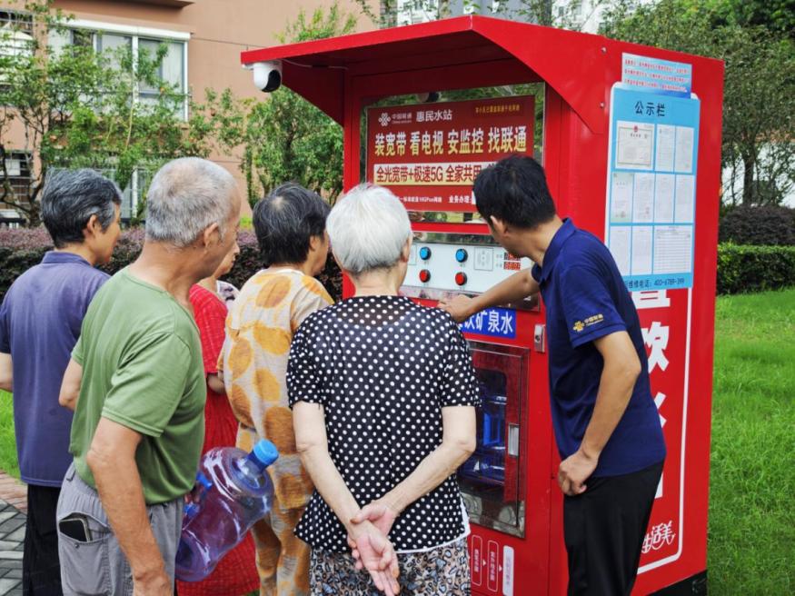 “以前烧水总有水垢,现在接水直接喝都放心,孩子上学带的水壶也干净多了!”邹新家园的张阿姨开心说道。针对农村饮水健康需求,钟楼联通在邹区镇主要行政村及部分社区投资建设12台智能健康水站,惠及2万余户家庭。水站搭载深度净化技术,实时监测水质指标,出水标准优于国家直饮要求。村民刷卡即可24小时取水,价格仅为桶装水的五分之一,低保、五保等特殊群体还能享受补贴。联通公司通过数字化技术,自动化检测水站运行状态,水质状态,建立常态化巡检机制,定期消毒检修,让“放心水”持续流淌进村民生活。